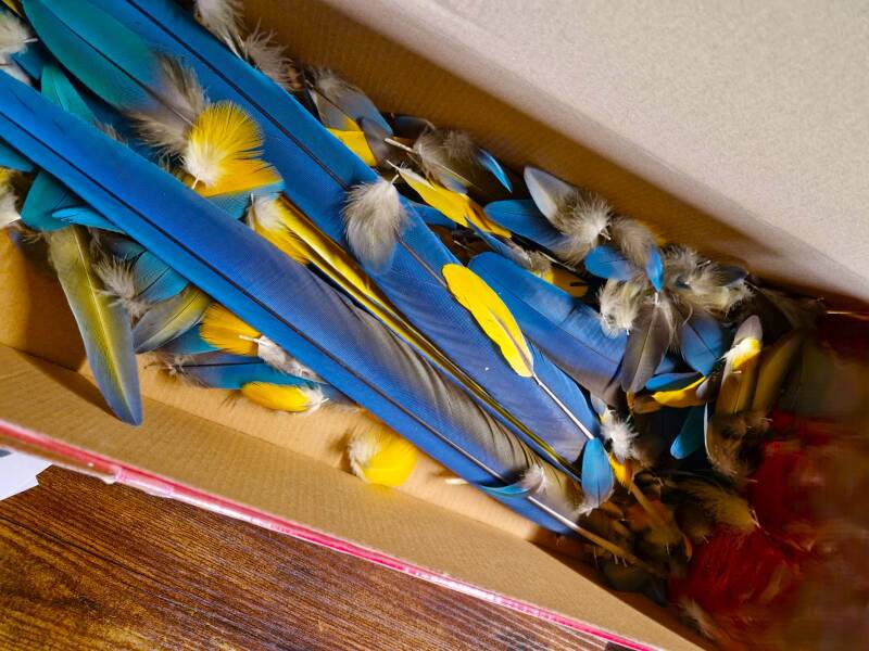 Im Laufe der Jahre hat es mich aber immer mehr zu den Papageien und Ara Federn hingezogen,